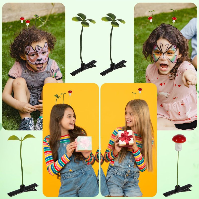 50pcs, Bean Sprout Hair Clips, Four-Leave Clover, Mushroom, Funny Plant Hair Clips, Cute Headwear, Hair Accessories for Kids, Girls, Women, Home School Party Supplies