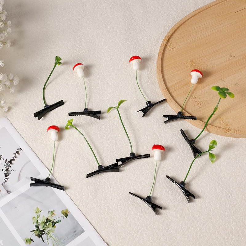 - Package Contents: You will get 50 pieces of cute hair clips, with 3 styles, including 20 bean sprouts, 15 four-leaf clover, and 15 mushroom hair clips. Sufficient quantity can meet your daily use and sharing needs.