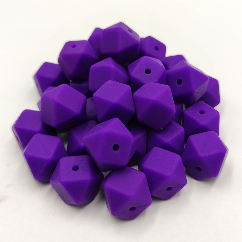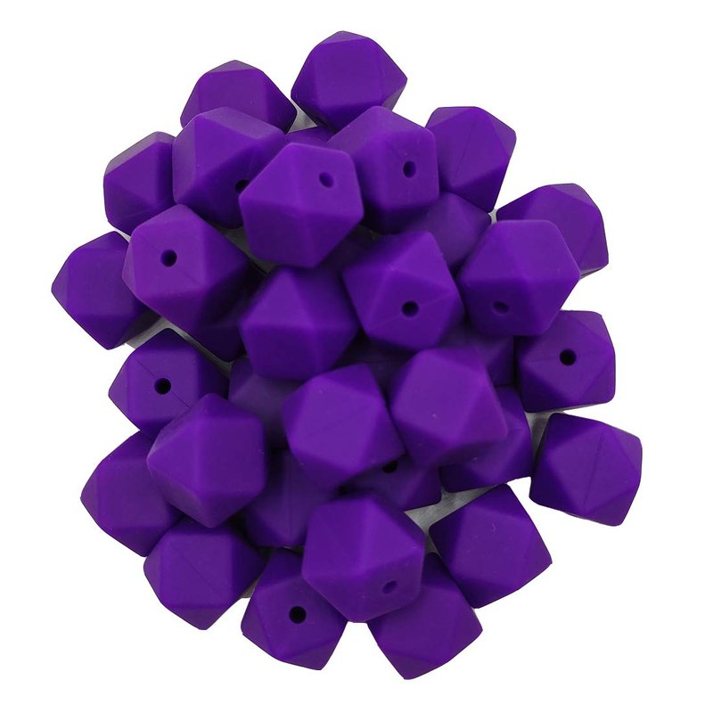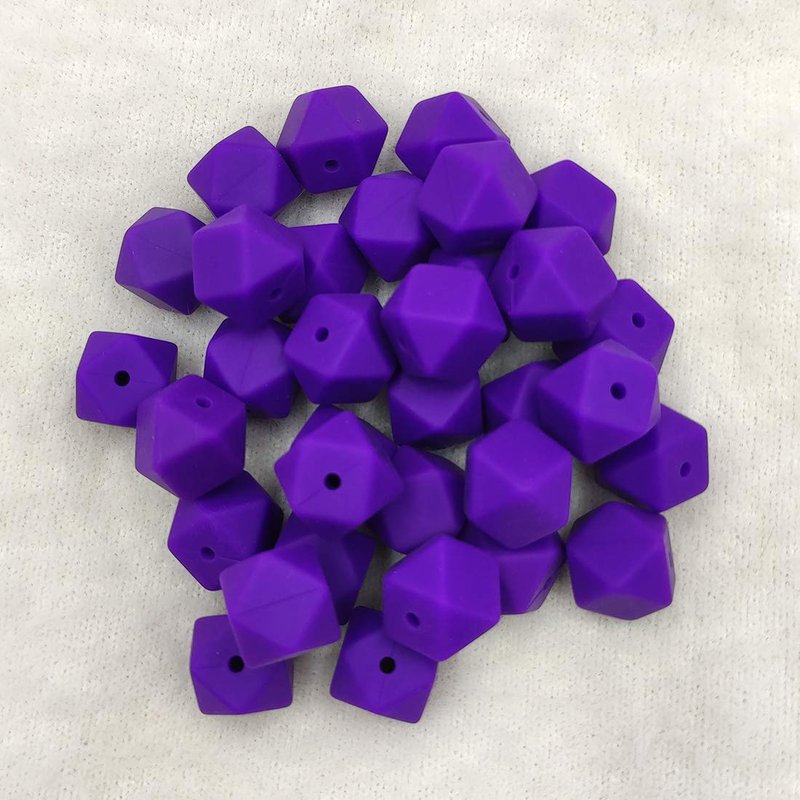 50pcs Classic Purple Color 14mm Silicone Hexagon Pearl Beads Silicone Geometry Spacer Beads for DIY Beading Mom Jewelry Necklace Making
