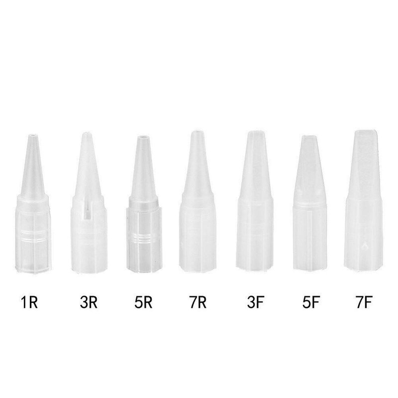 50PCS Clear White Eyebrow Tattoo Needle Tips Permanent Makeup Tattoo Nozzle Caps Disposable 1R/3R/5R/5F/7F (1R)
