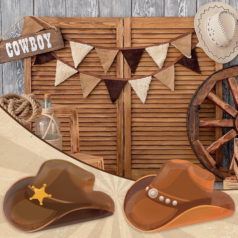 the design of the paper plate is two different hat shaped western patterns. The classic wild western pattern is full of the passionate and unrestrained atmosphere of cowboys and cowgirls.