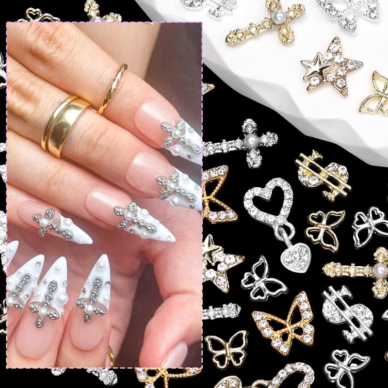 Including gold silver alloy butterfly/ dollars/ cross/ star/ heart charms for nails, you can diy your nail art randomly. Adding more 3D effect to your nail art design.