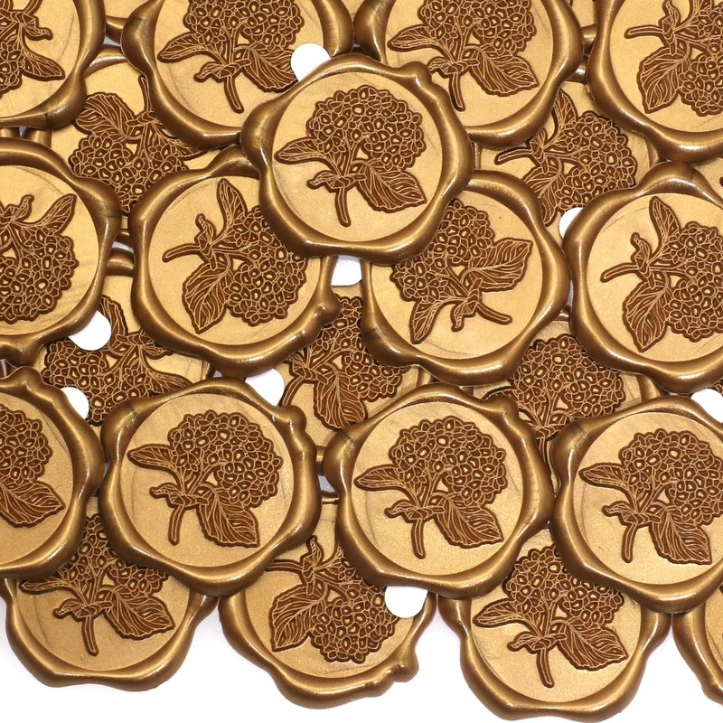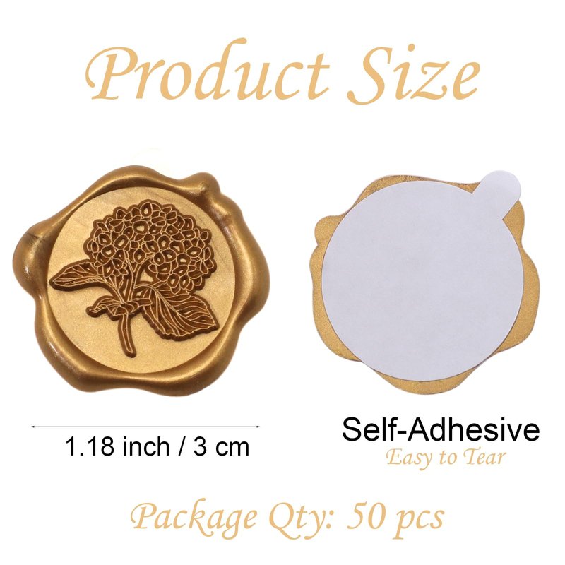 - 50pcs Hydrangea Wax Seal Stickers, Andotopee Floral Botanical Envelope Seal Stickers, Self-Adhesive Antique Gold Stickers Pre-made from Real Sealing Wax, Great for Wedding Invitation, Gift Wrapping