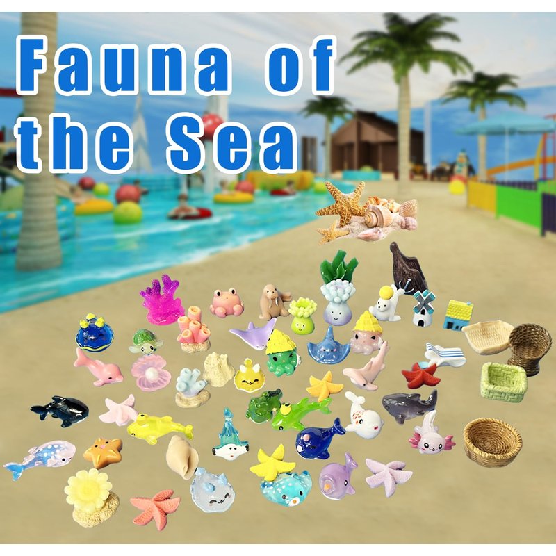 50PCS Mini Ocean Resin Animals, Aquarium Ornaments Decorations, Tiny Miniature Sea Animals Marine Miniature Animals for DIY Fish Tank/Easter Eggs/Christmas Decorations