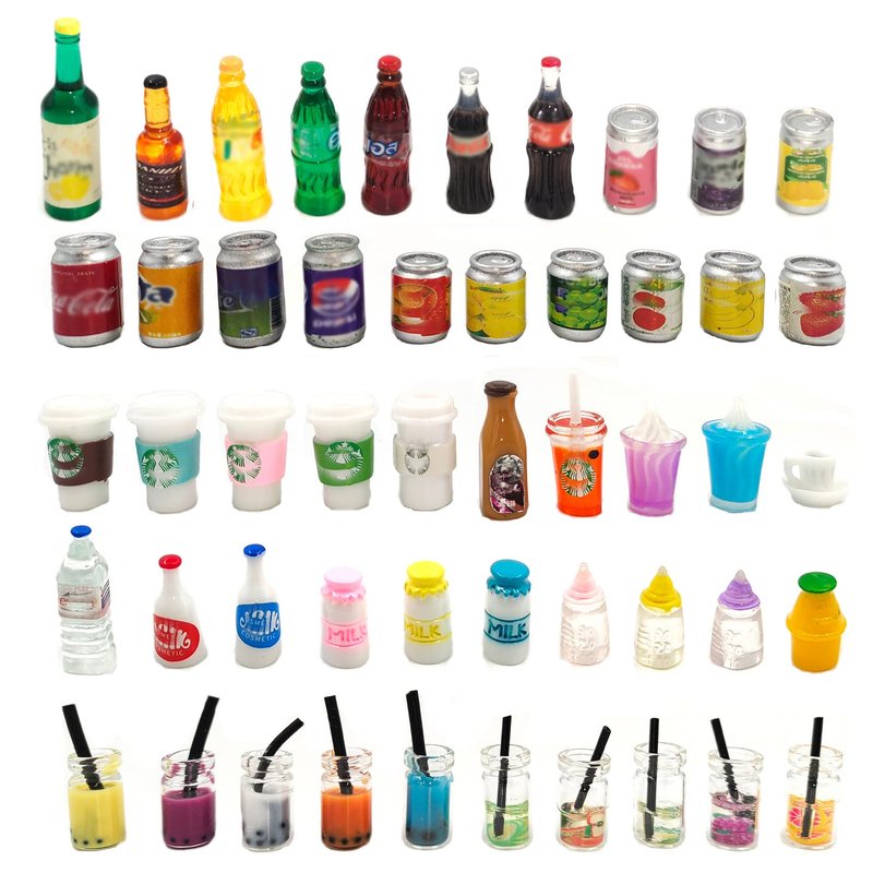 - SUPER VALUE ——50pcs miniature drink toys set come with different style . Enough quantity and style offers you starting pretend supermaket play,help to relieve stress, develop creativity and imagination, bringing you lots of fun.