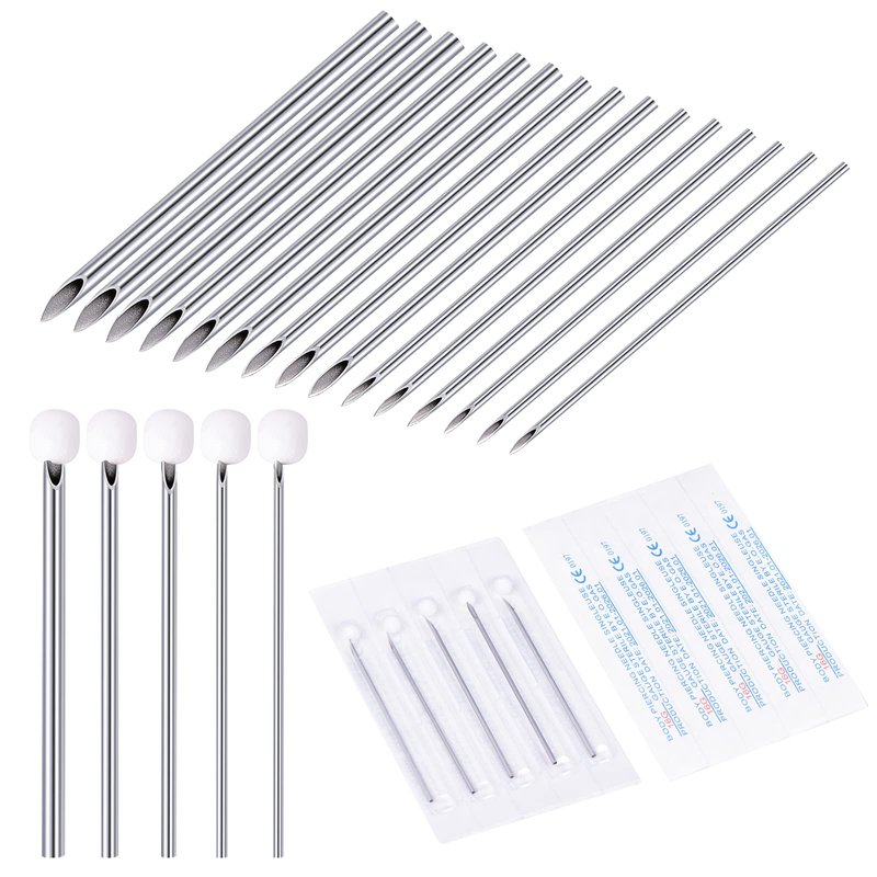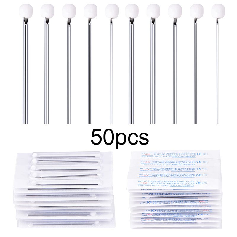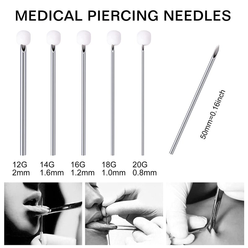 - PACKAGING:50PCS Piercing needles: 12G-5pcs;14G-10pcs;16G-15pcs;18G-10pcs;20G-10pcs;Individually packaged, safe and hygienic.