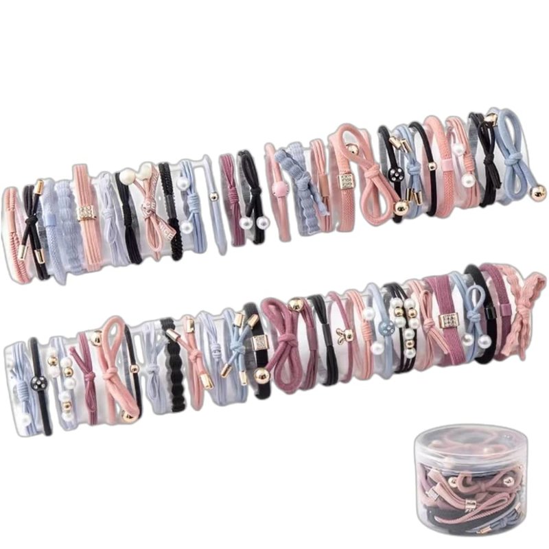 50PCS Mixed Color Hair Tie with Pearls - Headdress Hair Rope -High Ponytail Braid- Stretchable Rubber Hair Band for Women and Girls