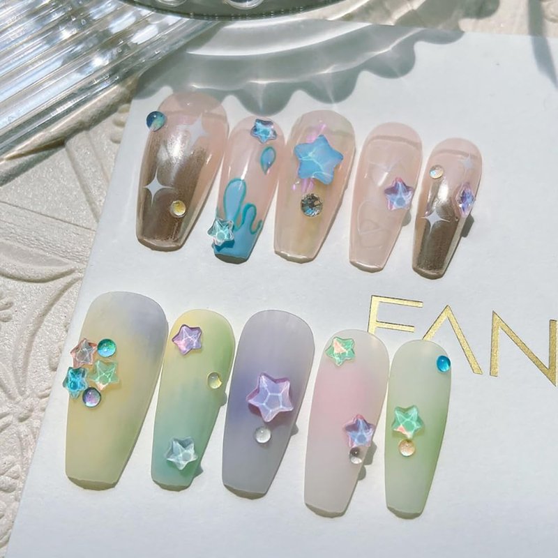 - ➤【Macaron Candy Color Star Charms】Macaron candy color series mixed color star charms for nails, perfect for professional nail salon or home nail DIY. Each pack of star charms usually contains 6-8 colors of stars, you can choose the color you want and combine with other nail charms/rhinestones to DIY the nail design you want!