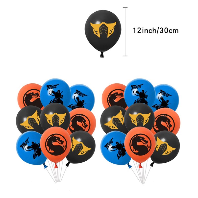"On special days, morrtal kommbat Party Balloons will bring you a different party experience. You will get 1morrtal kommbat happy birthday banner, 18 morrtal kommbat themed balloons, 1 morrtal kommbat big cake topper,24 morrtal kommbat cupcake topppers, 6 hanging swirls. Personalized Morrtal Kommbat party decoration brings you so much happiness."