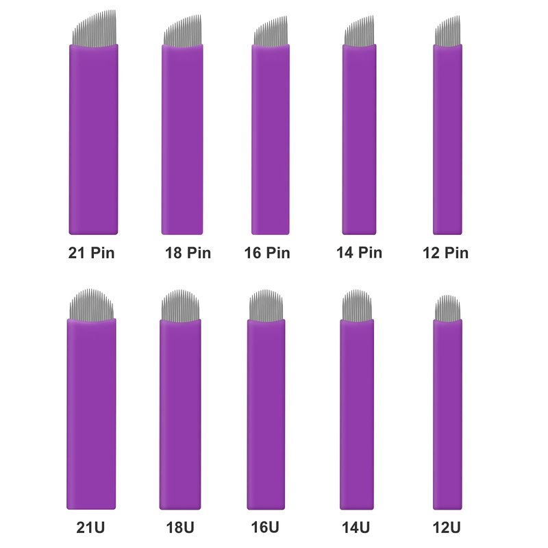 50pcs Purple Microblading blades Nano U shape 0.16mm Semi Permanent Makeup Eyebrow Tattoo needles (16U)