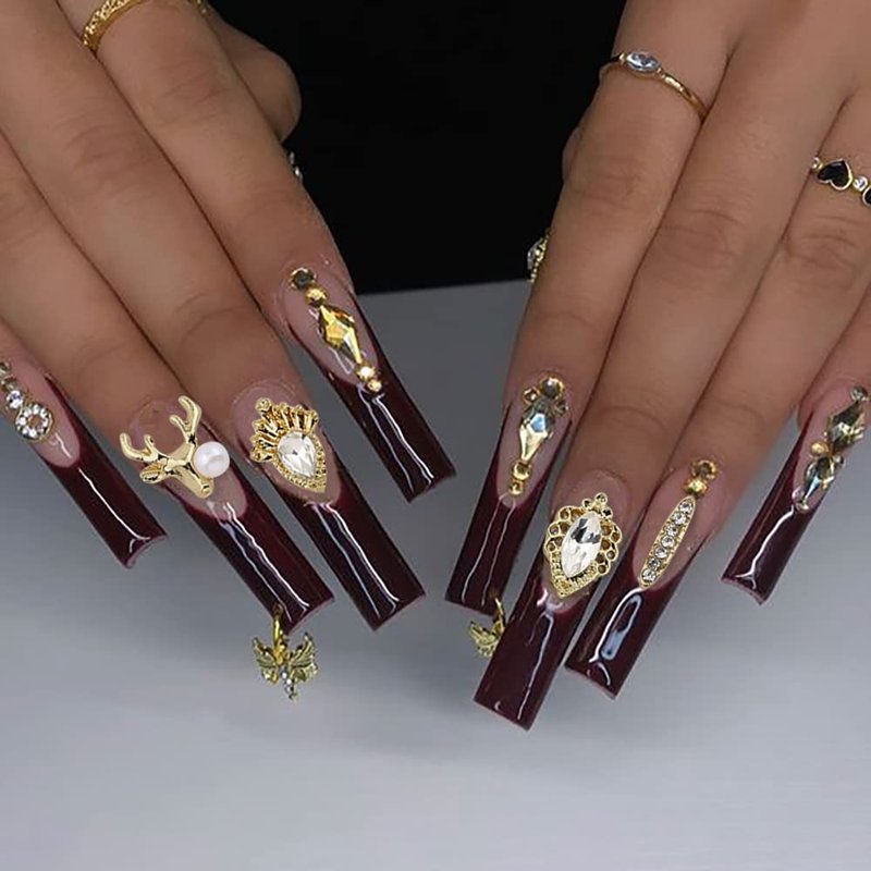 - 【3D Gold Nail Charms for Acrylic Nails】3D alloy nail art charms, shiny metallic luster makes them look quite advanced and luxurious, beautiful and durable, easy to stick on nails with glue, suitable for all those who love to diy nails.