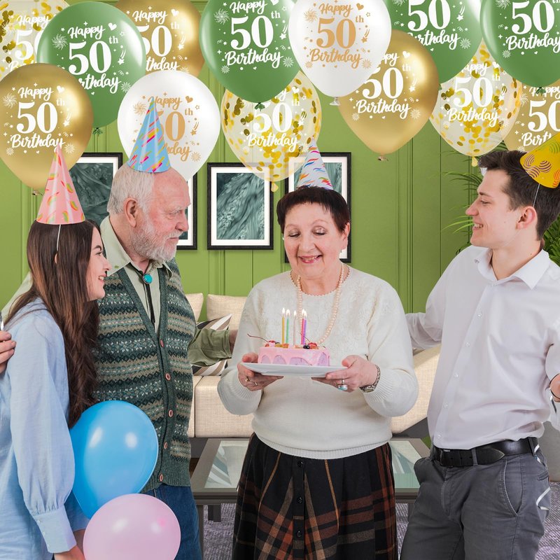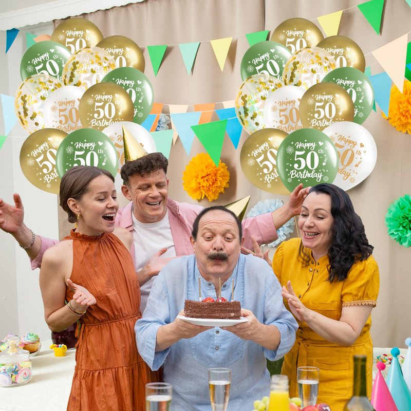 - 【Durable Material】: Fiftieth birthday balloons are made of premium latex and can be filled with air, helium, or water and do not break easily. The green gold and white 50th birthday decorations are printed with vivid and eye-catching birthday elements on the surface, which are not easy to fade, creating a joyful atmosphere for 50th birthday party