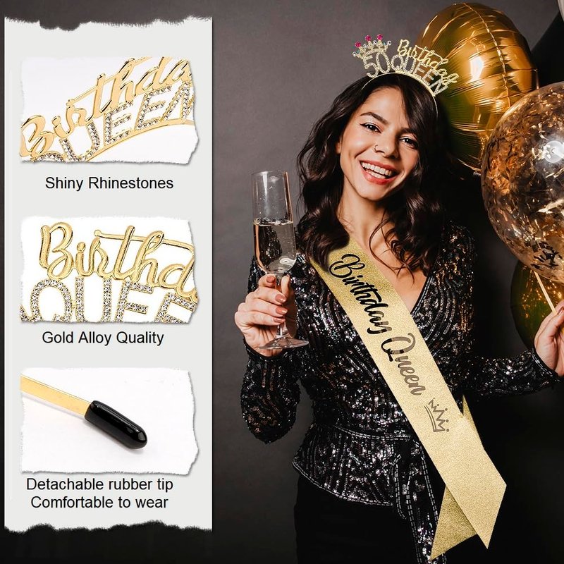 - Perfect 50th Birthday Gifts for Her : A Special Set for Her 50th Birthday Party, including 1 Birthday Sash, and 1 Tiara Headband