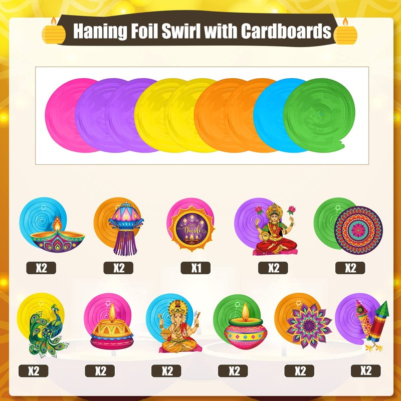 - Package Include: the valued package of Diwali hanging swirls includes 21 cardstocks and 30 spirals, including 21 spiral ornaments and 9 open end spirals; Enough Deepavali hanging swirls to hang all over your home for a happy Diwali
