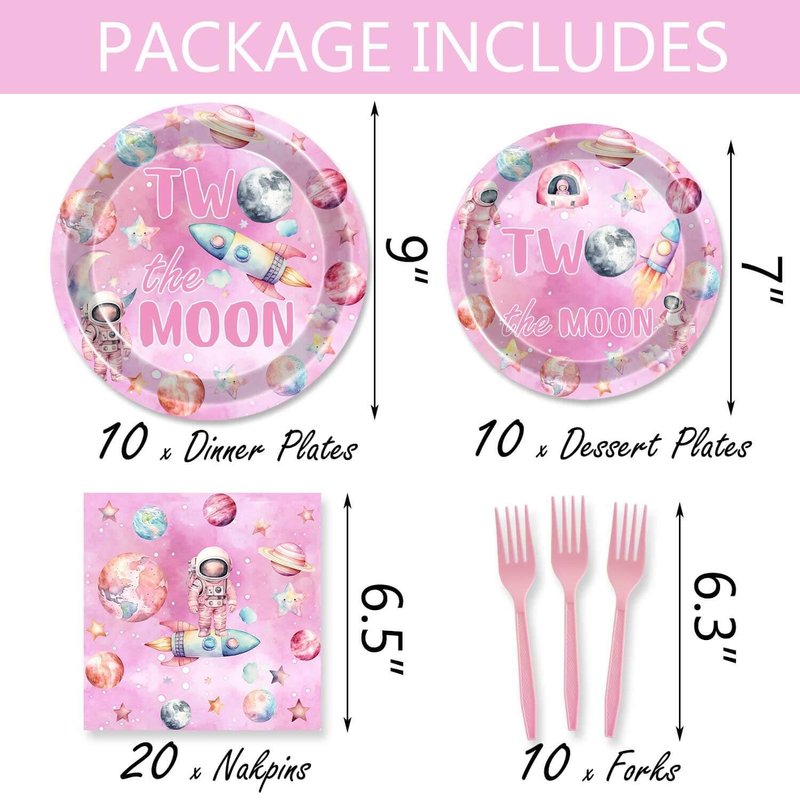 - Many Occasions: Outer space girls 2nd birthday party tablewares are great to decorate pink space 2nd birthday party, outer space two years old party, two the moon birthday party, etc