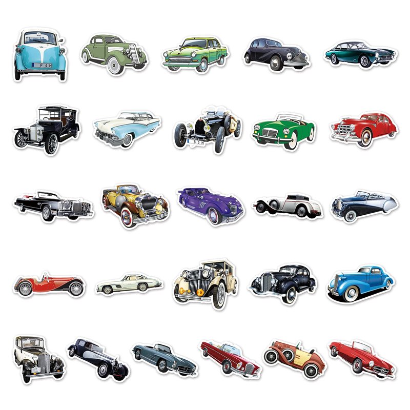 - WHAT YOU GET - 51 pieces different 2-3" vintage car stickers. No duplicates, the pattern shown in the main picture will appear in your package.