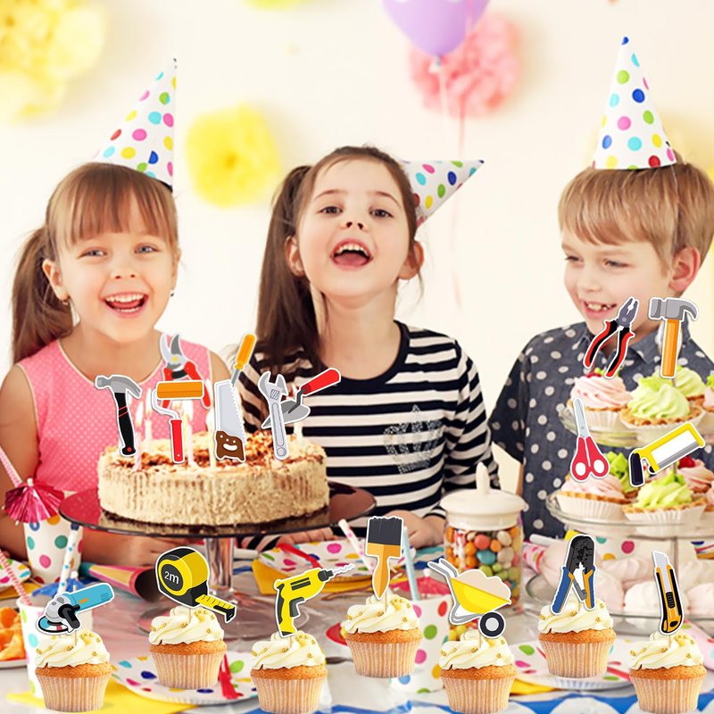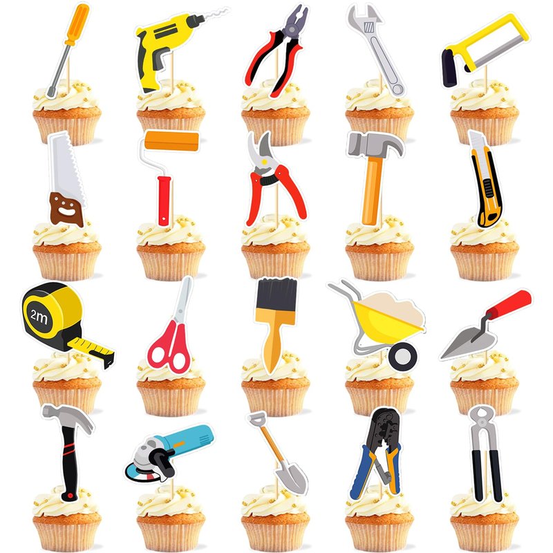 - How To Use: Package Includes 50 Pieces tools theme patterns, 50 pieces sticks with 50 pcs glue dots. When the party is going on, you can diy this tools cupcake topper with your kids to decorate your cake and will make your cupcake looks more delicious.