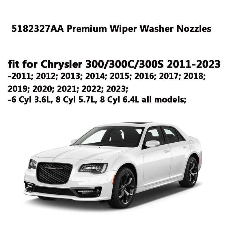 Windshield washer nozzle jet fit for Chrysler 300 | 2011; 2012; 2013; 2014; 2015; 2016; 2017; 2018; 2019; 2020; 2021; 2022; 2023; | 6 Cyl 3.6L, 8 Cyl 5.7L, 8 Cyl 6.4L all models;