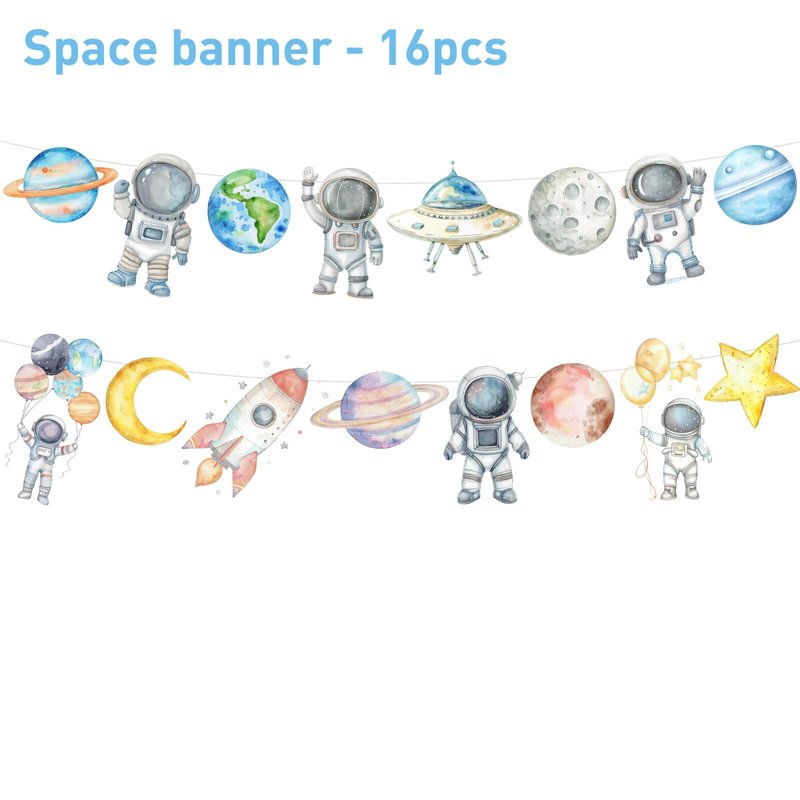 - 1 set of space banner with total 16 pieces, the height of each piece is 18cm, the width of each piece is approx 10-20cm