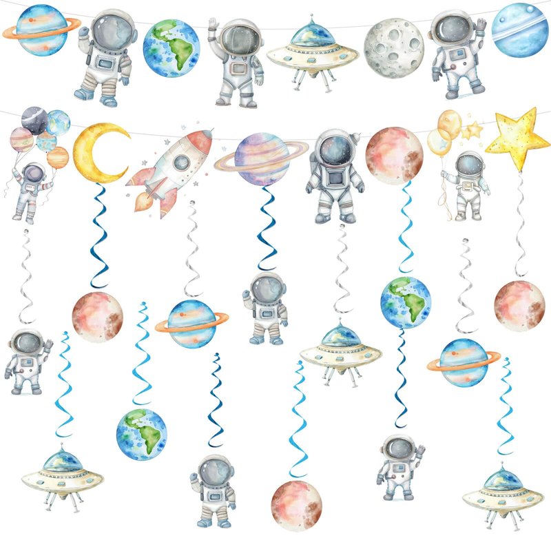 - Widely used - these space banner and hanging swirls are perfect for your ourter space themed party, solar system themed party, Astronaut birthday party, boy's birthday party, and so on. They are also suitable for decorating classroom, bedroom, ceiling, windows, branches, porch and so on