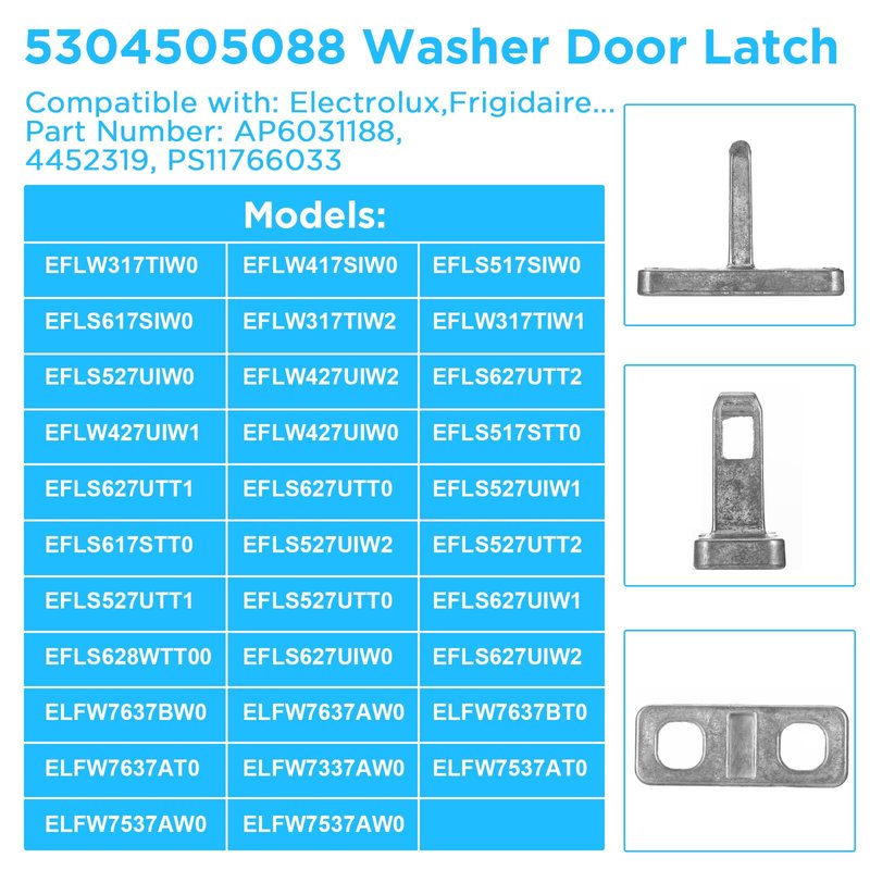 - 💧【Fix Symptoms】Washer door won't close, won't open, won't start, water leaks, door won't latch... Our 5304505088 washing door latch for Electrolux will provide a nice closure every time.