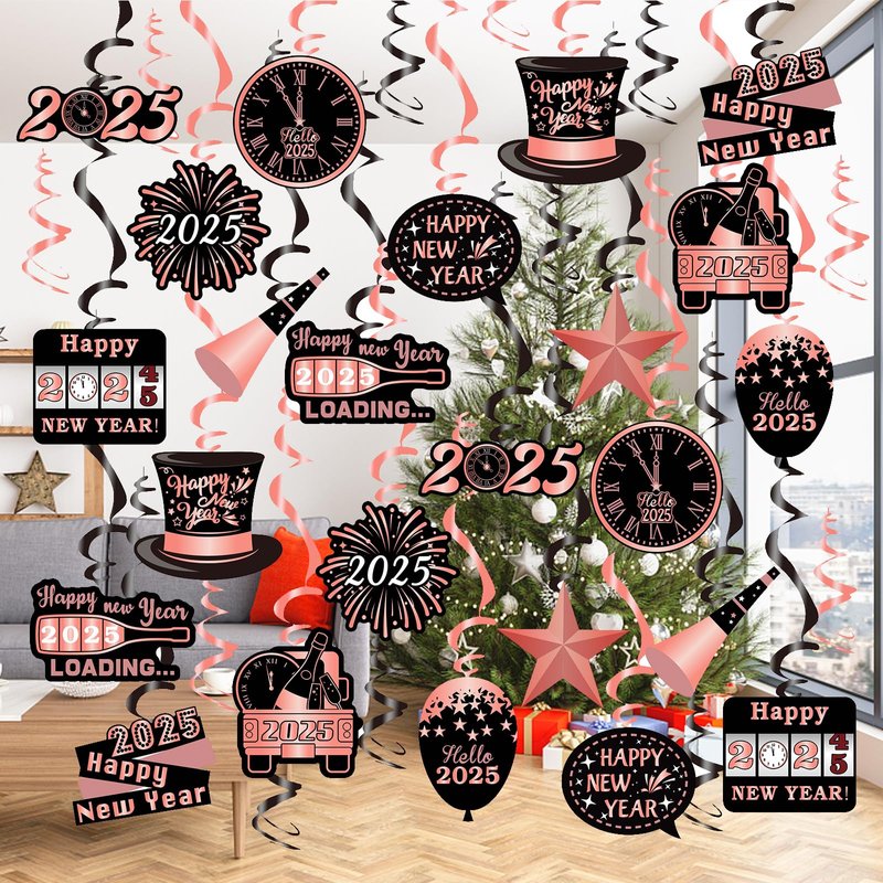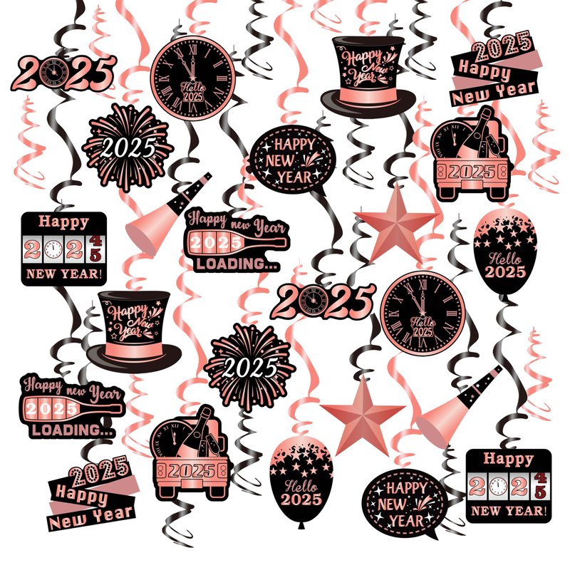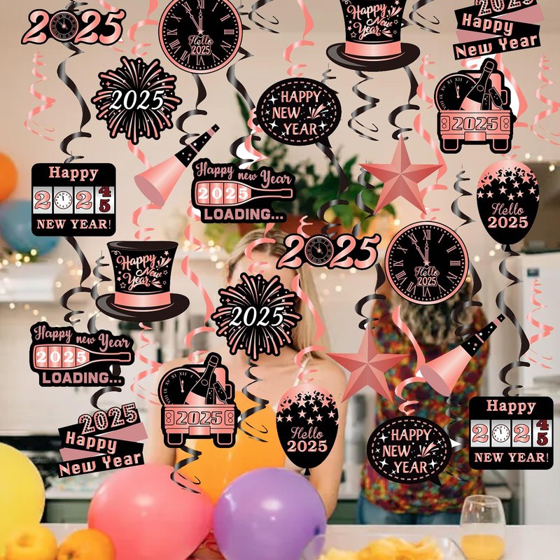 Celebrate the arrival of 2025 in style with this vibrant set of 54 hanging swirl decorations! Perfect for ringing in the new year or adding a festive touch to any birthday party, these eye-catching spirals will instantly elevate your decor. Crafted from high-quality materials, they're designed to withstand indoor use and bring a burst of color and joy to your celebrations. With their whimsical shapes and vivid hues, these hanging swirls are sure to captivate guests of all ages. Effortlessly transform your space into a lively and inviting atmosphere, creating cherished memories that will last long after the party ends.