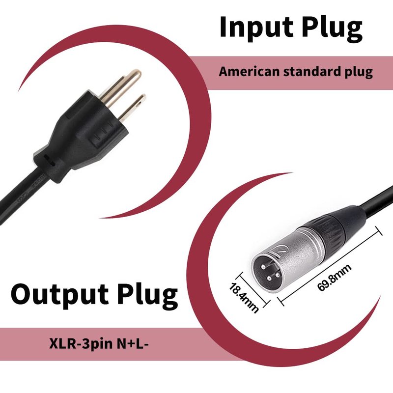 - ⭕DC Connector by Default is Sent by Product Image: 3prong XLR Connector ( 1 + , 2 - , 3 empty),Suitable for Battery type: 13S 48V Li-ion Battery Pack✅