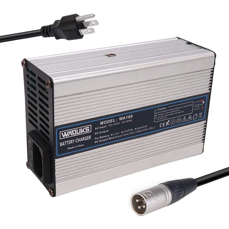 54.6V 3A Charger 48 Volt 3 Amp Lithium Battery Smart Charger Silver Aluminum Case with Cooling Fan Output XLR Connector Used for 13S 48V Li-ion Battery Pack