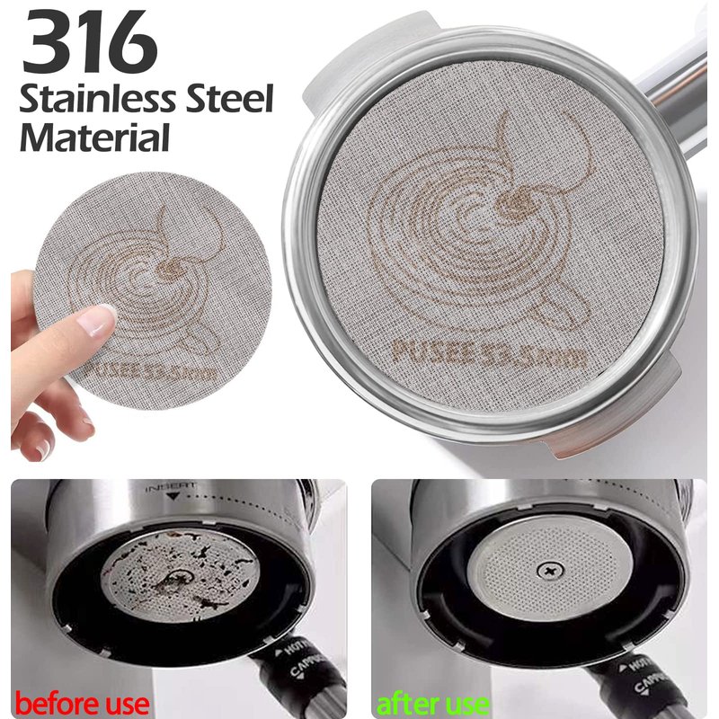 - 【Puck Screen 1.7mm Thickness 150μm】Espresso puck screen Made of the high-quality 316 stainless steel,Which has a greater reusability and good filtration.This coffee filter will disperse water evenly, increase the amount of solids that dissolve into the espresso, helping you get better extraction.
