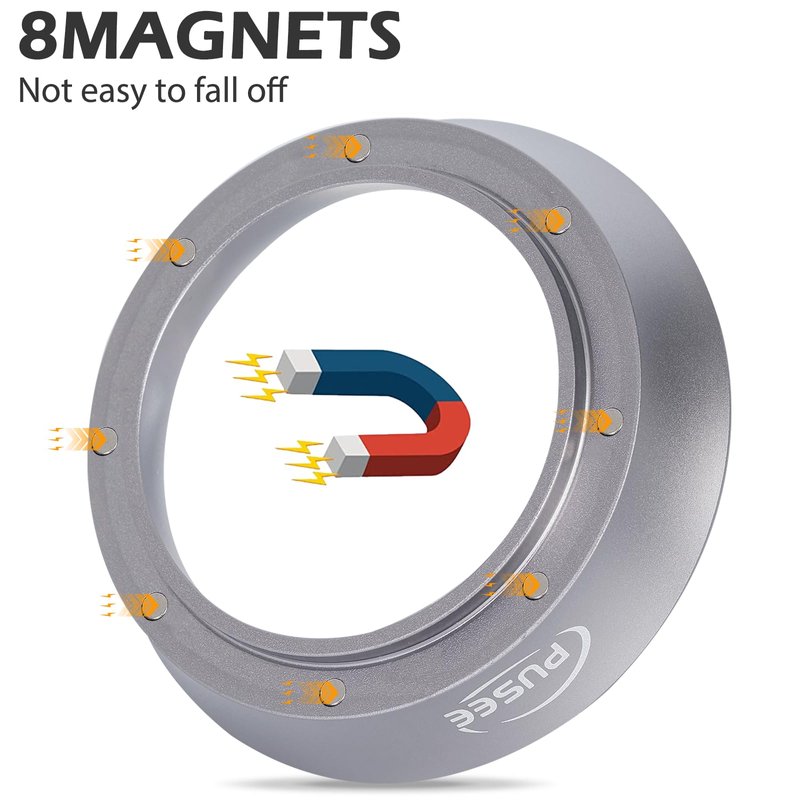 - 【The funnel with Magnetic Design】anodized aluminum ring has 6 magnetic points,can improve stability and effectively prevent the powder from spreading.you will be delighted at the simplicity of the application. Place it on your portafilter and it will lock into place instantly, convenient to place powder.