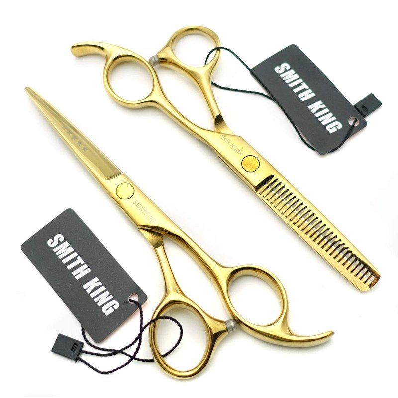 5.5 Inches Hair Cutting Scissors Set with Razor Combs Lether Scissors Case,Hair Cutting Shears Hair Thinning Shears for Personal and Professional (Gold)
