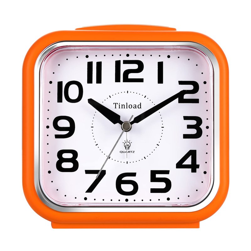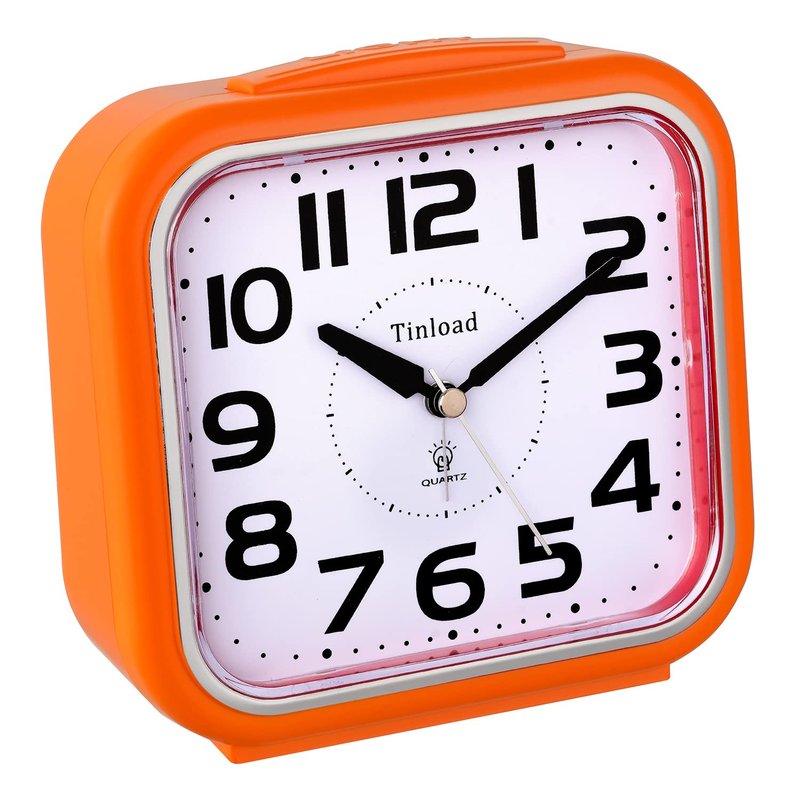 5.5" Silent Analog Alarm Clock Non Ticking, Gentle Wake, Beep Sounds, Increasing Volume, Battery Operated Snooze and Light Functions, Easy Set, Orange