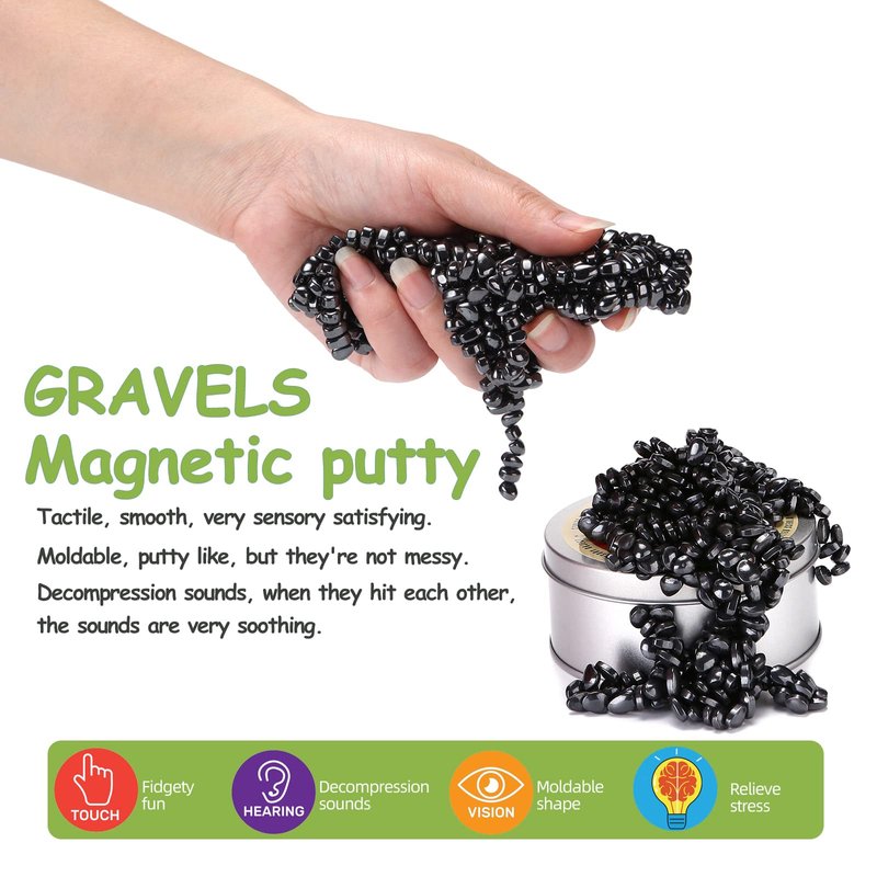 - Magnet Ferrite Stones Balls Toys Like Putty But Not Real Putty: After 6 times of polishing, it is only for the delicate touch with fingers, about 0.27" in size, irregular shape, no two are exactly the same, and it will make a thin sound when pinched.