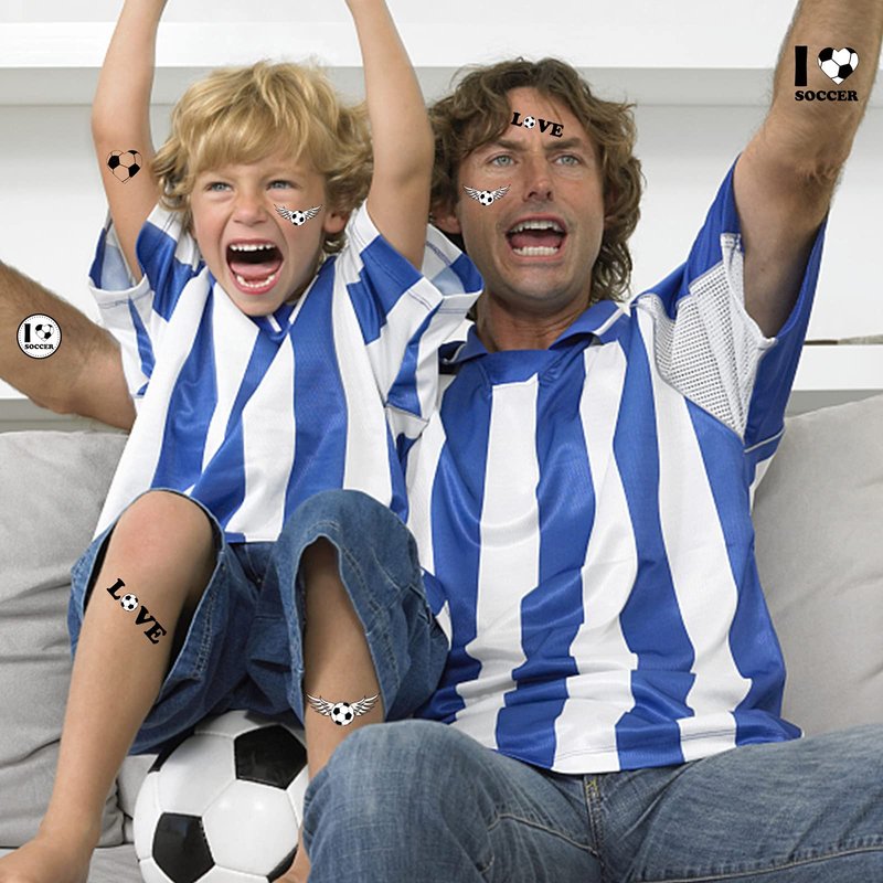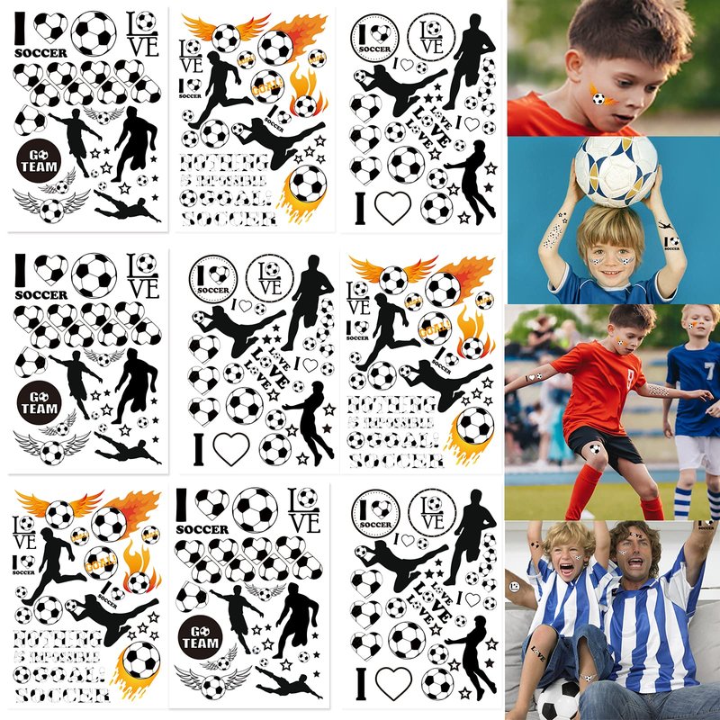 - Package of 550 Soccer themed temporary tattoos with more than 50 designs(Soccer, Motivational saying, Soccer action and so on).