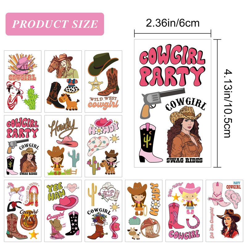 Cowgirl Temporary Tattoos for Girls Bachelorette Party Favors Decorations Supplies
