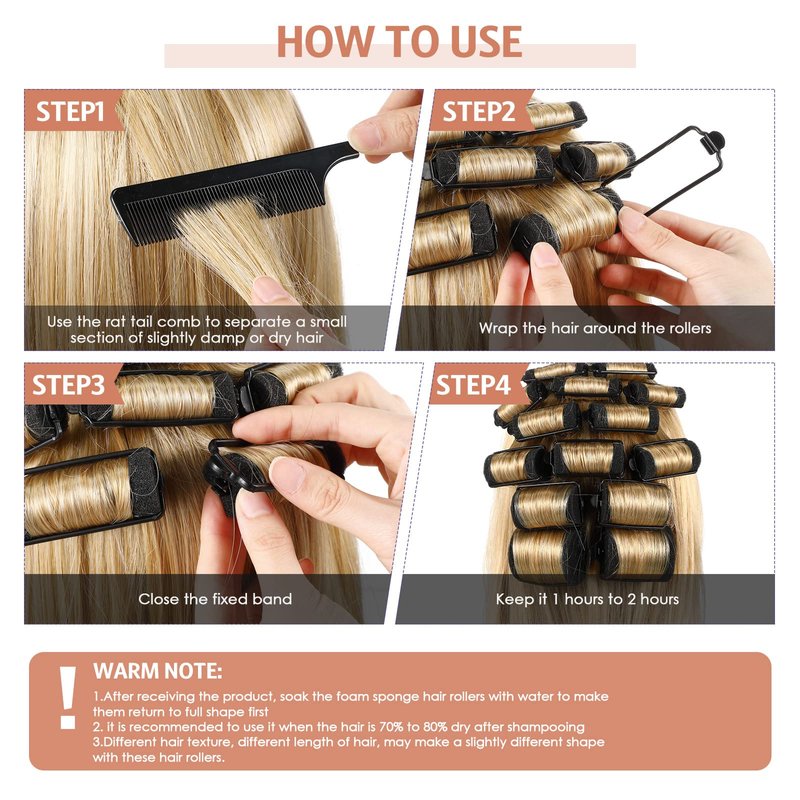 - Reliable quality: these hair curlers are made of foam sponge, the parting comb is made of steel and plastic, both of them are long lasting, these rollers do not require heating, won't pull your hair, considerate tools for you to choose, you can enjoy the hair styling at home for many times