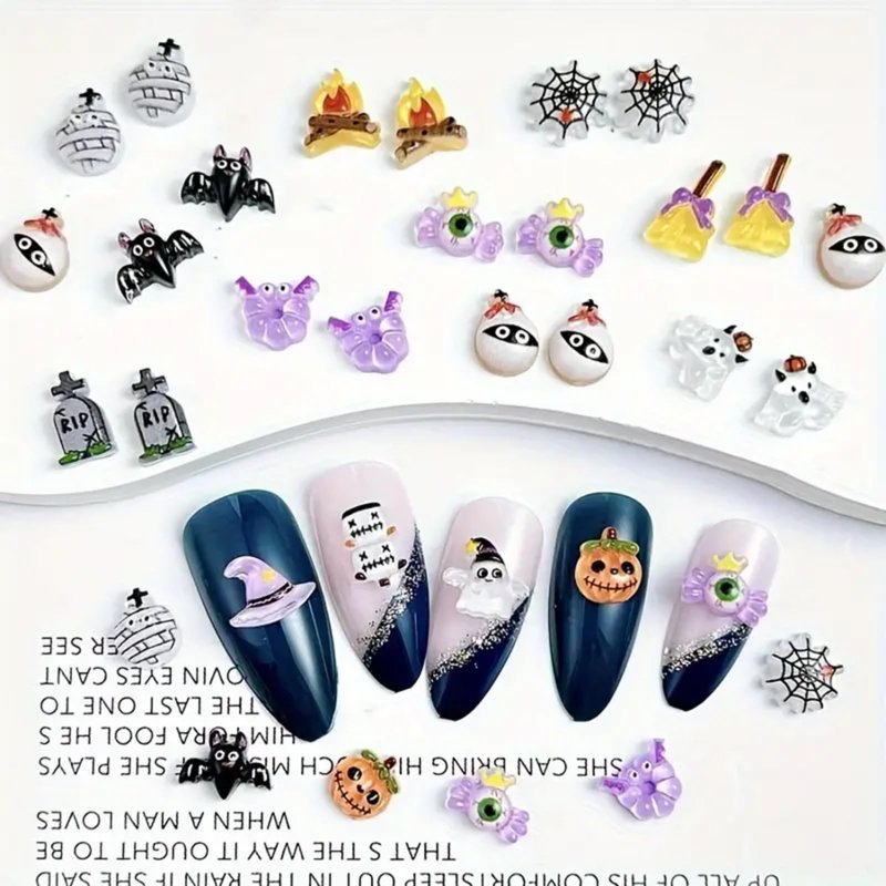 - 【3D Halloween Nail Art Charms】The package contains 56 pieces Halloween nail charms, the classic spider webs, bats, pumpkins, ghosts and other elements perfectly fits the Halloween theme, and is the perfect choice for celebrating Halloween.