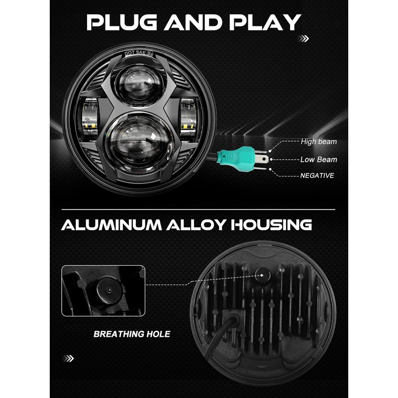 - 𝐏𝐥𝐮𝐠 & 𝐏𝐥𝐚𝐲: 5.75'' High/Low beam headlight with waterproof IP67.