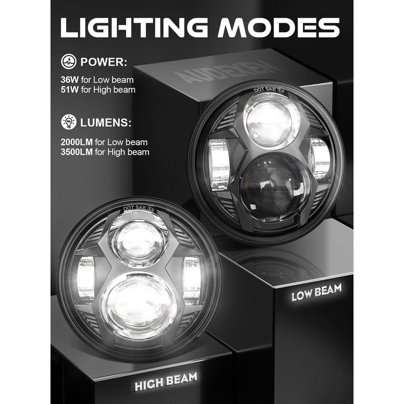 - 𝐁𝐮𝐲 𝐖𝐢𝐭𝐡 𝐂𝐨𝐧𝐟𝐢𝐝𝐞𝐧𝐜𝐞: Any issue with 5.75 inch round headlight just feel free to reach out to AUDEXEN via Amazon message center. [Log in your amazon account > Choose "Your orders" > Find the order ID > Click "Contact seller]
