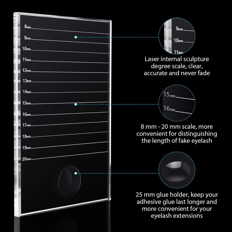 These transparent false eyelash holders come with 13 scale lines from 8 mm to 20 mm, which is carved into crystal, can help to show the eyelash length clearly and accurately, more convenient for distinguishing the length of eyelash, practical to use in the process of eyelash extensions.