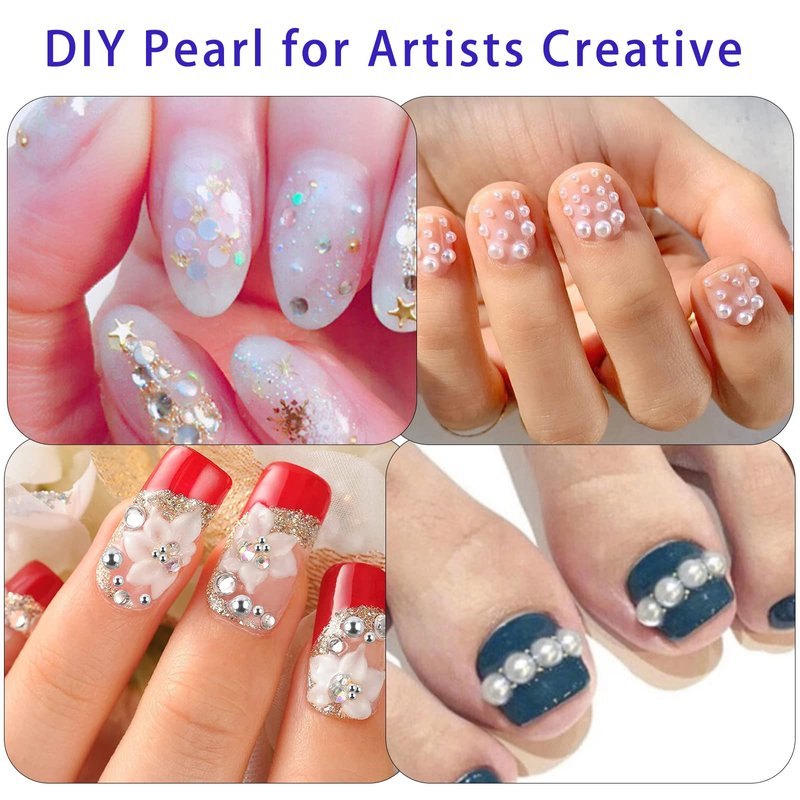 - Easy To Use: Our nail pearls for nail art use half pearl design, with smooth surface on the back, you can use glue to stick pearl nail gems on any smooth surface, because it' s attached to object with glue, it can be reused.