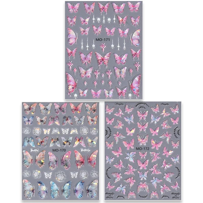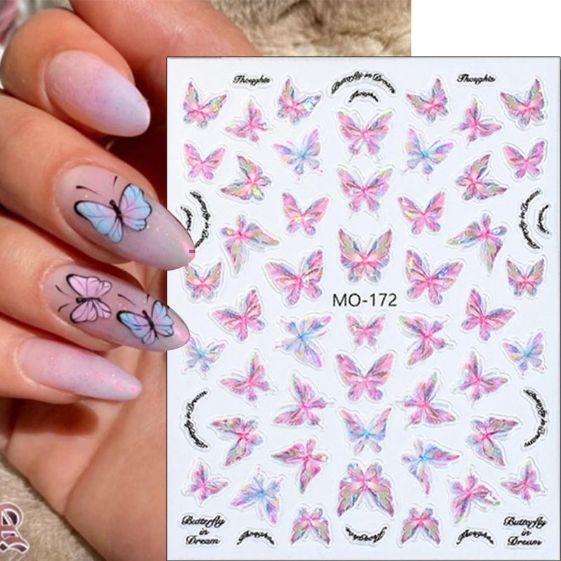 - 🦋【Self-adhsive Butterfly Nail Decals for Nail Art】Self-adhesive butterfly nail decal stickers, can be used for a variety of nail decoration, both for natural nails and fake nails. Self-adhsive design make them easy to stick on nails and can help to get beautiful nails quickly, perfect for nail lovers DIY nail art at home.