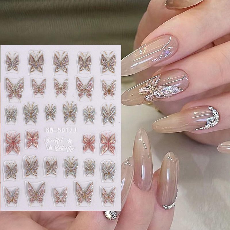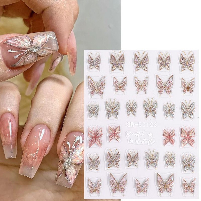 - 🦋 Vibrant Butterfly Patterns 🦋 Whether it's a solid color or a multicolored design, 5D Butterfly Stickers will add a touch of liveliness and charm to your nails. We present you with unique and captivating butterfly designs that will make your fingertips shine with vibrant allure.