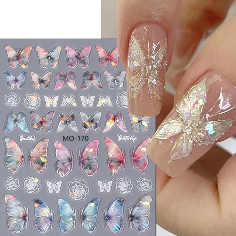 - 【Aurora Butterfly Nail Decals for Nail Art】Aurora butterfly nail decals are great nail accessories for spring and summer nail designs, fashion nail stickers with fluttering butterflies can be used for daily nail art, parties and holiday nail art decorations.