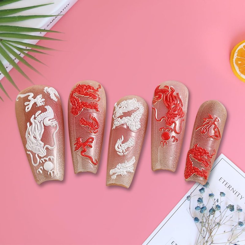 - √【Chinese Dragon Nail Art Stickers】The Chinese zodiac year "Dragon Year" is approaching, and you can use these 5D dragon stickers with friends to design your nails and welcome the Dragon Year with joy.