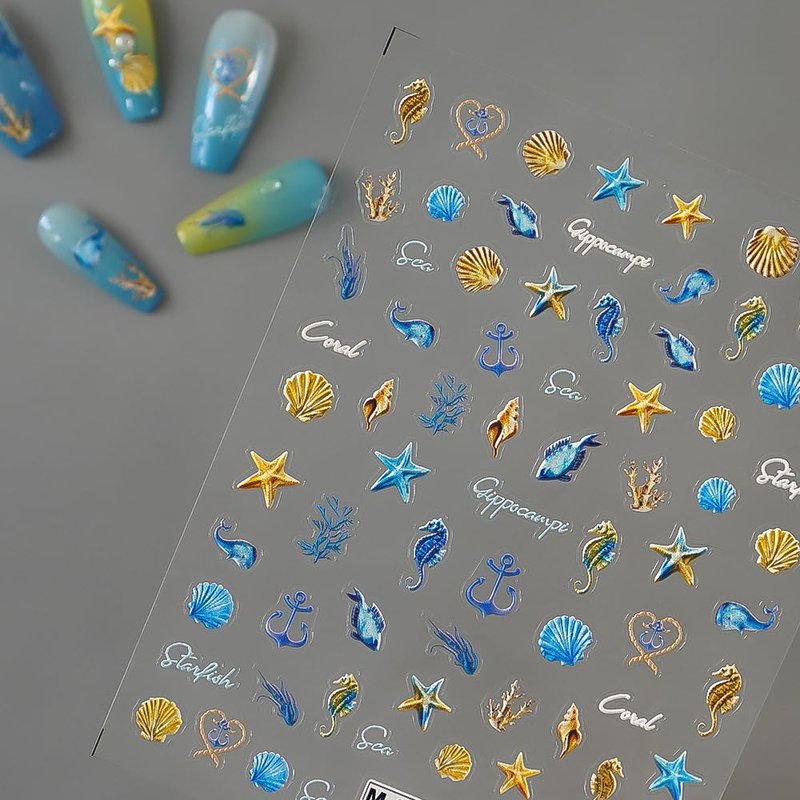 Seashell Starfish 5D nail art decals and marine life self-adhesive nail stickers are ocean themed nail design and party decoration.