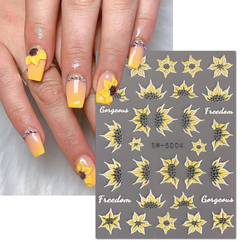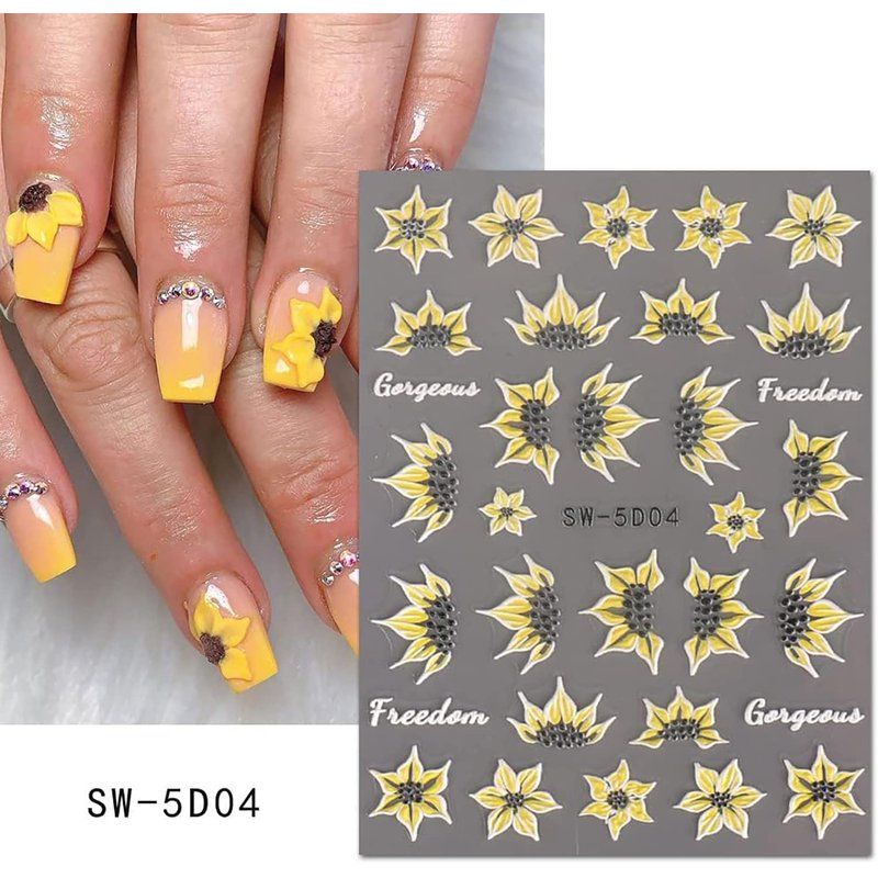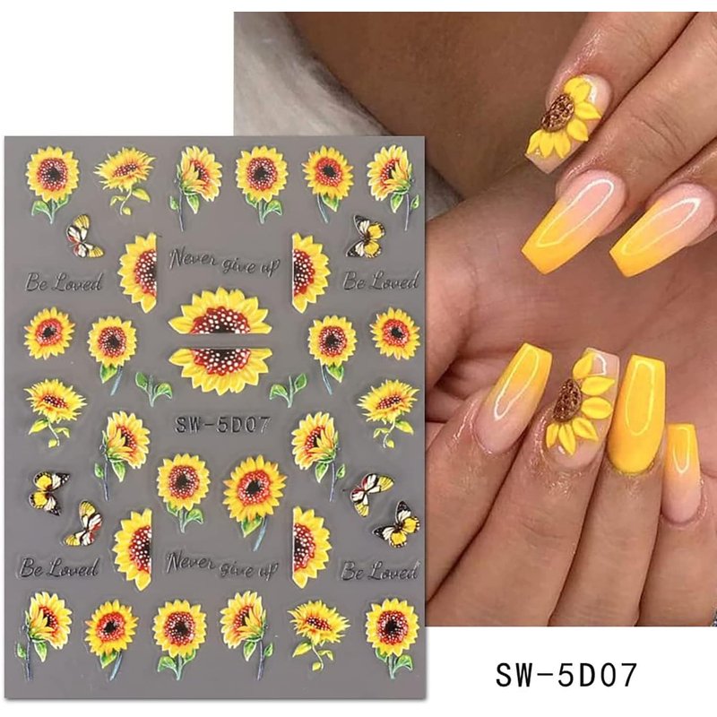 - High Definition Engraving: This set of 5D flowers nail stickers includes daisy, sunflower, butterfly and so on. Satisfy your idea of creating exclusive nails, make your diy nails different from others, and it is the perfect complement to your nail salon studio. Letting you have new nails everyday.