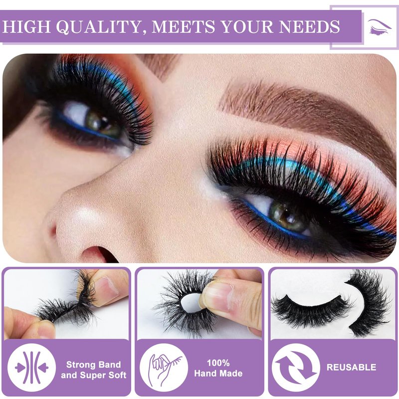 - Natural Look and Comfortable Mink Lashes: Our false eyelashes are light as feathers and smooth as silk. Give your eyelashes an incredible feeling of softness. Look natural. Suitable for daily life, party, and so on. Make your eyes charming and attractive. Wispy and fluffy lashes are 100% handmade with super soft and comfortable synthetic fibers. No irritation or allergy, which will make you happier and more confident, just enjoy it!