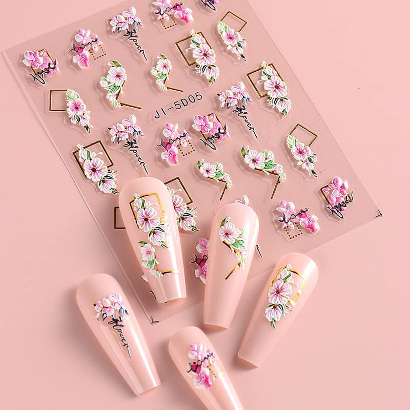 - 【You will get】There are 4 sheets of 5d embossed flowers nail stickers with different designs. There are many beautiful flowers design with embossed texture. Up to 120 designs to choose for your nail idea.