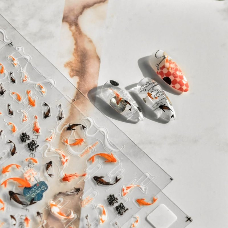 - Koi Fish Nail Sticker Set-Lively koi, placed a good hope for the New Year. Lucky fish are particularly nimble when they swim between fingernails.More realistic than ordinary stickers, you can easy to create an amazing nail effect.